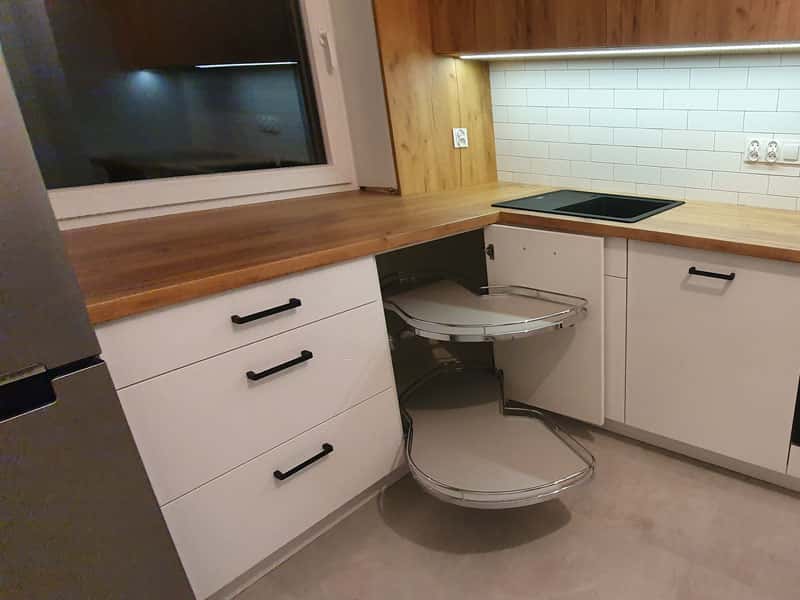 Dzięki wieloletniemu doświadczeniu oraz nowoczesnemu parkowi maszynowemu realizujemy nawet najbardziej nietypowe projekty. Wykonując meble zarówno do przestronnych domów jak i do niedużych kawalarek.
